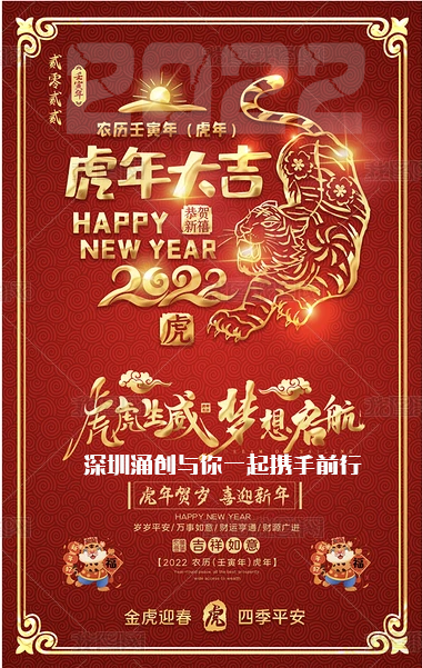 首先感謝大家在牛年給予我公司的鼎力支持。在2022年春節(jié)即將來臨之際,深圳市涌創(chuàng)興盛科技有限公司全體員工恭祝大家新春愉快,合家歡樂,萬事如意,虎年吉祥、虎慮生威!