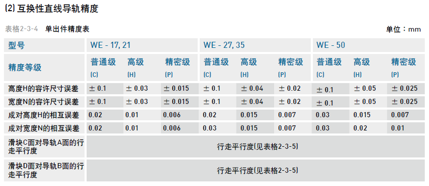 WE系列直線導軌的精度,分為普通、高、精密、超精密、超高精密級共五級,客戶可依設備精度需求選用精度。