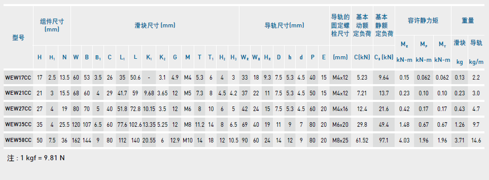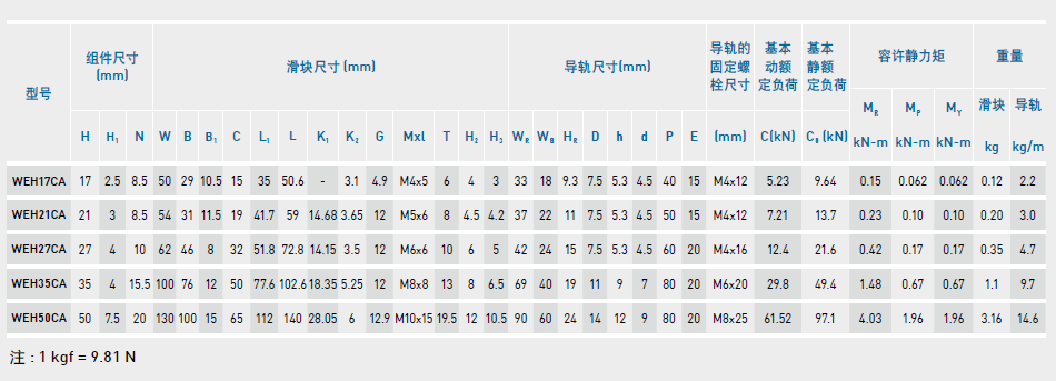 直線導軌寬幅型直線導軌WE系列尺寸表