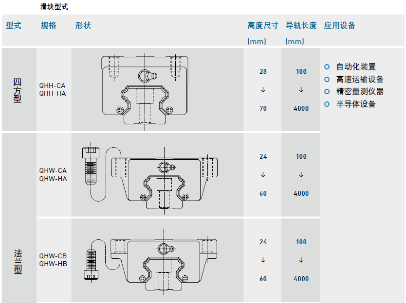 直線導(dǎo)軌靜音QH系列型式及用途