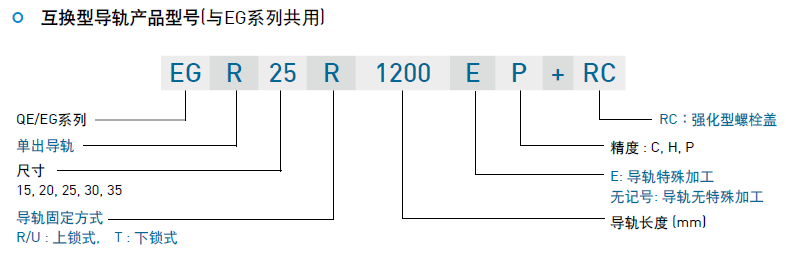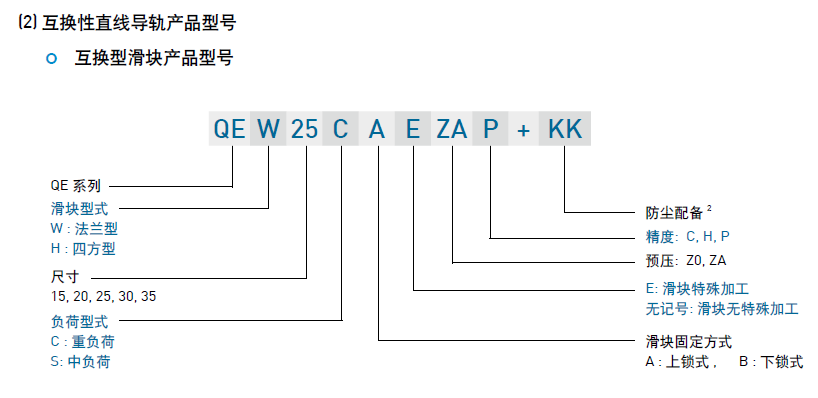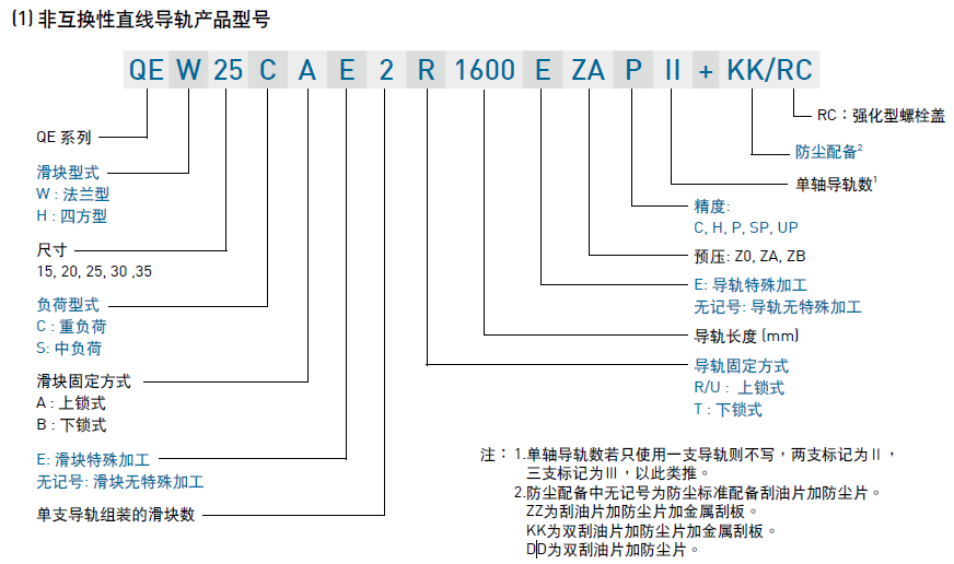 (1) 非互換性直線導軌產品型號