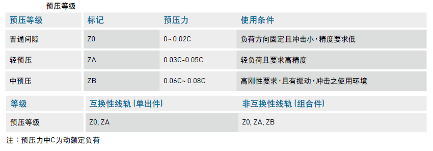 直線導軌QW 系列預壓力及預壓等級介紹