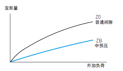 預壓力是預先給與鋼珠負荷力,亦即加大鋼珠直徑,利用鋼珠與珠道之間負向間隙給與預壓,此舉能提高直線導軌的剛性及消除間隙;以下圖來解釋,提高預壓力可增加直線導軌剛性。但小規(guī)格建議選用輕預壓以下預壓,以避免因預壓選用過重降低其使用壽命。