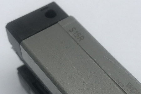 E2自潤式直線導(dǎo)軌,在端蓋與刮油片之間帶有潤滑機(jī) 構(gòu),滑塊最外端備有可拆換式油箱,其構(gòu)造如圖所示。 藉由可拆換油箱提供潤滑油至潤滑機(jī)構(gòu),由潤滑機(jī)構(gòu)潤 滑導(dǎo)軌珠槽。 油箱內(nèi)含導(dǎo)油組件,其特定的立體狀使滑塊在任意擺置 或油量較少時均能接觸到潤滑油,而將油箱內(nèi)之潤滑油 徹底吸出使用。