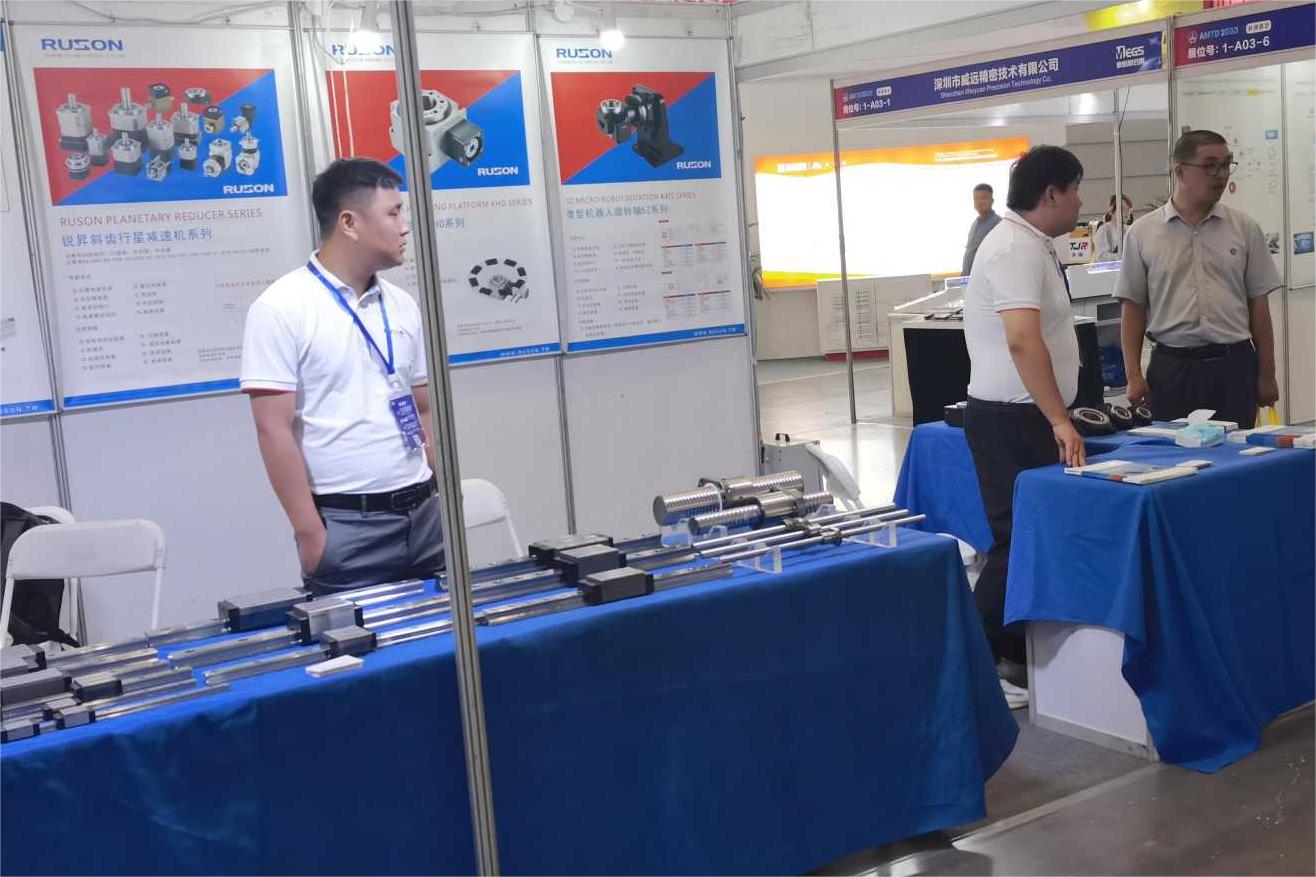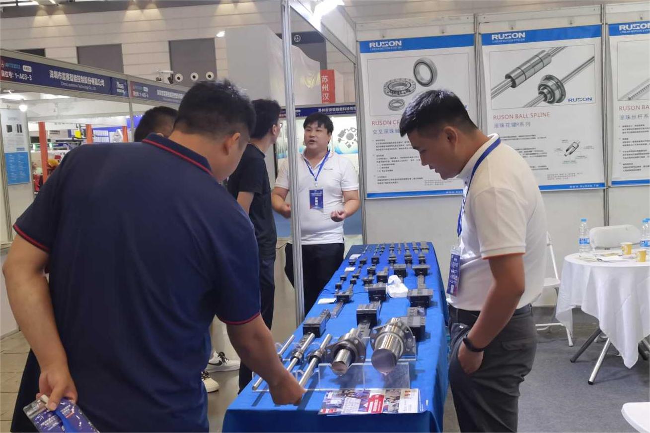 展會(huì)現(xiàn)場(chǎng)負(fù)責(zé)人員介紹RUSON系列產(chǎn)品,直線導(dǎo)軌、絲桿、花鍵。